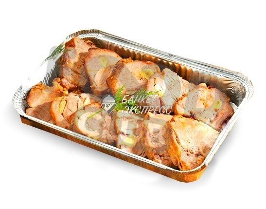 Буженина из свинины с картофелем по-деревенски, овощами гриль в сливочно-грибном соусе