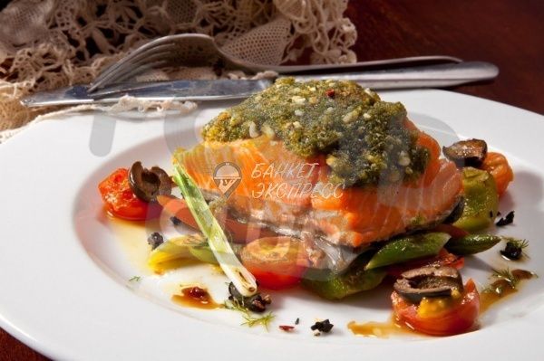 Филе форели в медово-горчичном соусе с овощами соте 10 шт