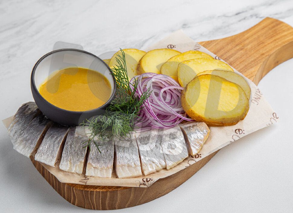 Бочковая сельдь с запечённым картофелем