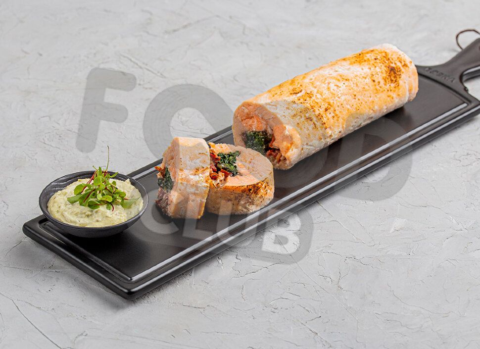 Рулет из сёмги со шпинатом и сушёным томатом