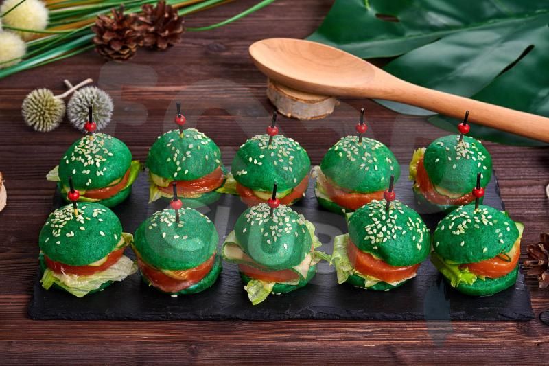 Мини-бургер со слабосоленым лососем и сыром чеддер