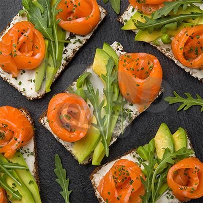 Брускетты - Брускетта со слабосоленой семгой, авокадо и сливочным сыром