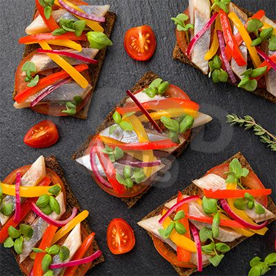 Брускетты - Брускетта с сельдью, красным луком и болгарским перцем