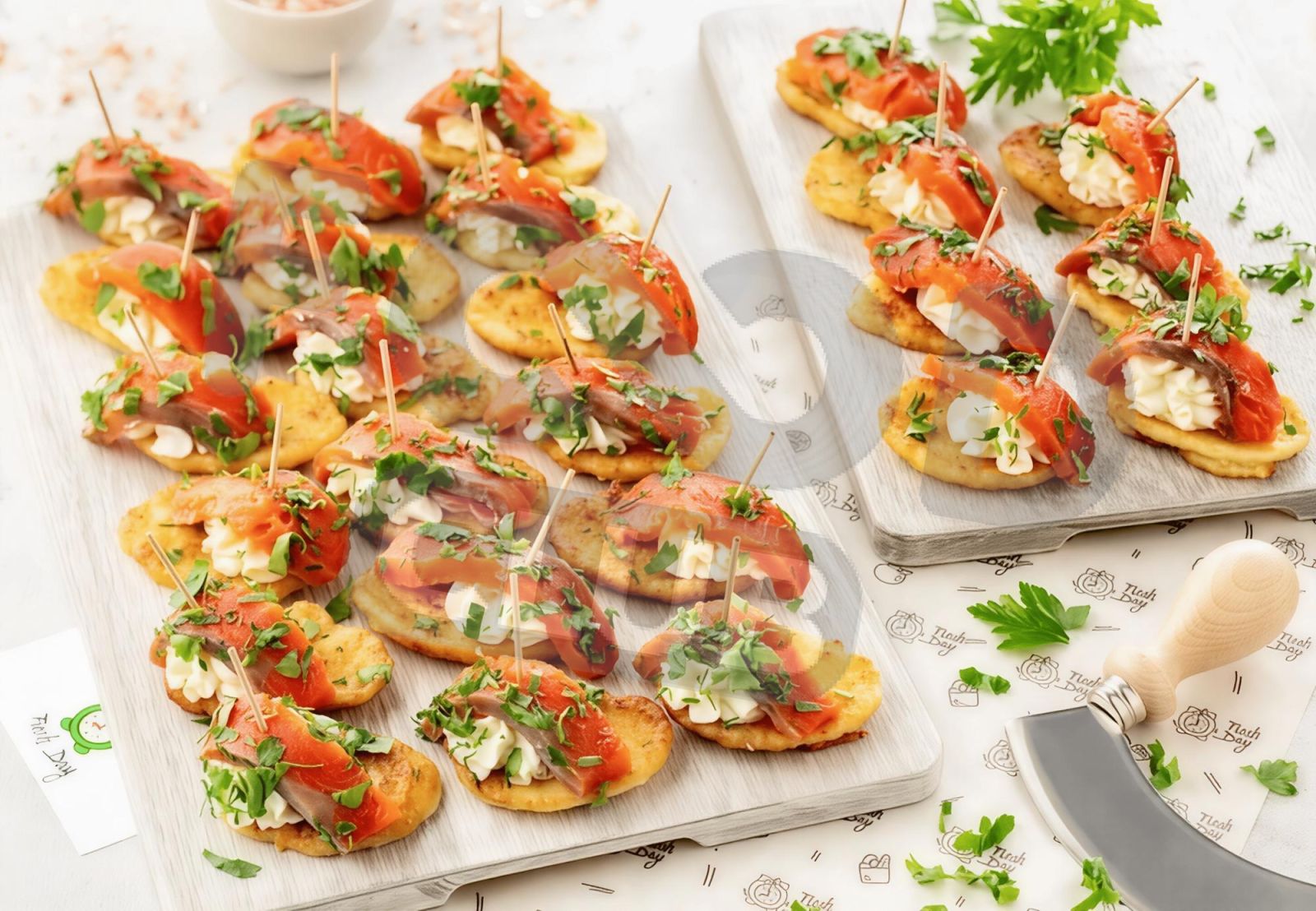 Эти драники из свежего фермерского картофеля со сливочным сыром и с\с красной рыбой точно понравятся вашим гостям. Сытное блюдо станет оригинальным украшением праздничного стола и подойдет как для небольшого фуршета в офисе, так и для кейтеринга с выездным обслуживанием.